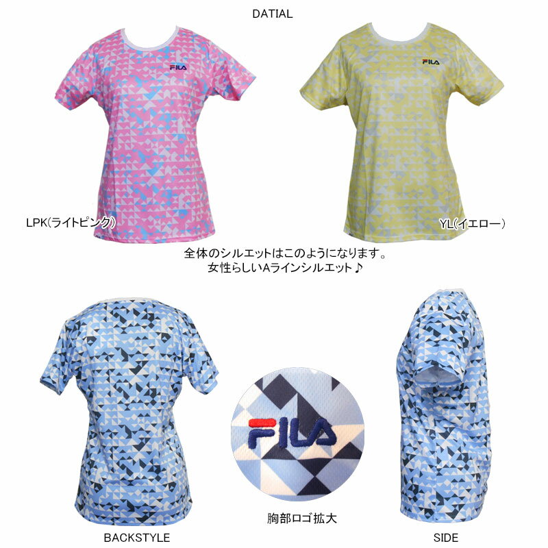 品名 FILA フィラ スポーツ トレーニング フィットネス 女性用 レディース Tシャツ 品番 417-906 特徴 ◆女性らしいAラインシルエット ※吸水速乾 ※UVカット機能付き ※ランニング・トレーニング時に最適!軽い運転や普段着にもオススメ♪