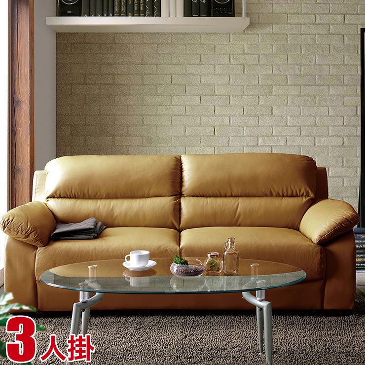 ソファ 三人掛け 牛本革 ボリュームたっぷり ポルトR キャメル リビングソファ 応接ソファ 3P 3人 本革 牛革 天然革 無地 単色 シンプル モダン 脚付 ポケットコイル ライトブラウン キャメル 黄色 完成品 輸入品 送料無料