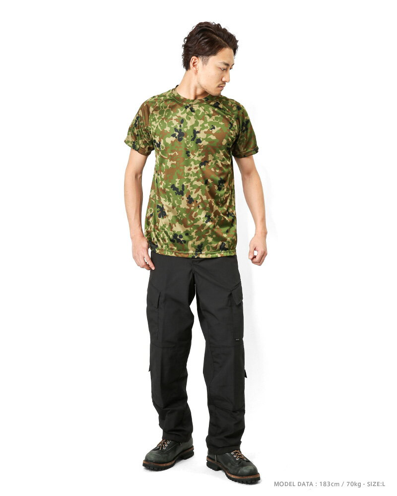 サラリとした肌ざわりが持続するので、過酷な状況下での任務・演習に挑む自衛隊員からも支持されるほどの実用性!裏面はメッシュ構造で通気性も抜群です。
