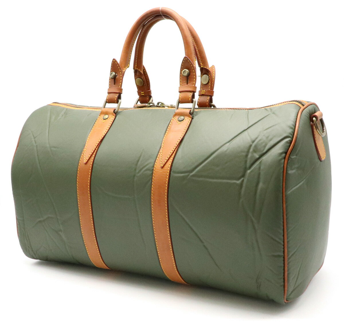 軽量なバチュークロスナイロンとレザーを使用したボストンバッグ。